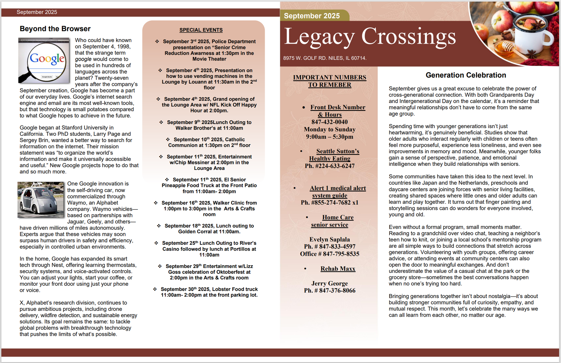 Welcome to Legacy Crossings, a vibrant 55+ active-adult community offering elegant high-rise living with a variety of floor plans tailored to your lifestyle. Enjoy beautifully designed spaces, exceptional amenities, and engaging activities, all within a thriving neighborhood in Niles, close to top cultural, dining, and entertainment destinations. Experience the best in active living—schedule your tour today!
